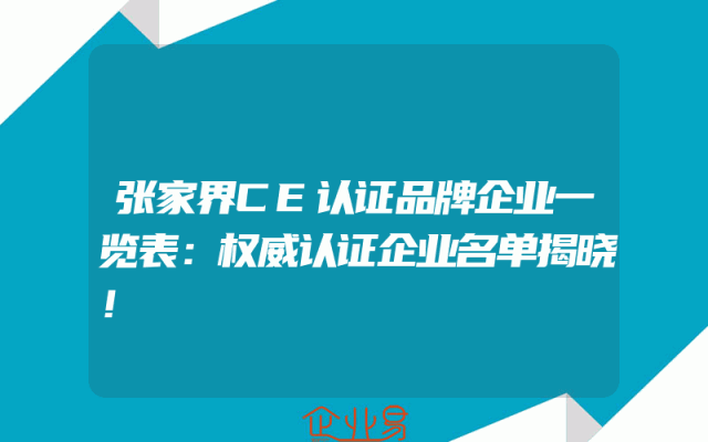 - 张家界CE认证品牌企业一览表:权威认证企业名单揭晓!