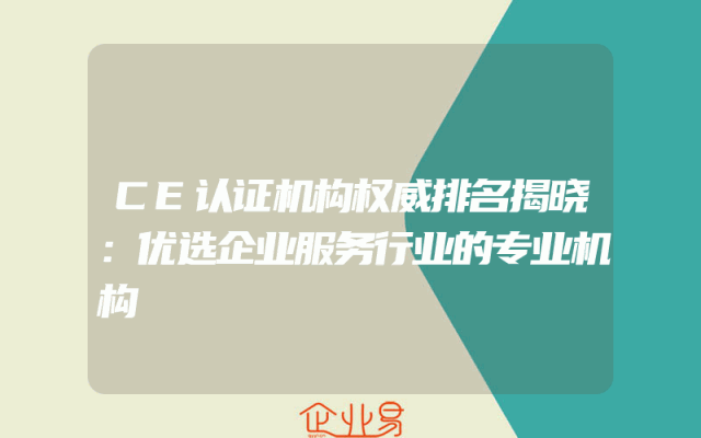 - CE认证机构权威排名揭晓:优选企业服务行业的专业机构