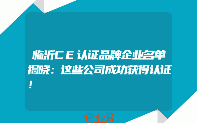 - 临沂CE认证品牌企业名单揭晓:这些公司成功获得认证!