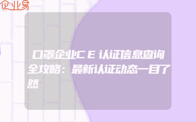 - 口罩企业CE认证信息查询全攻略:最新认证动态一目了然