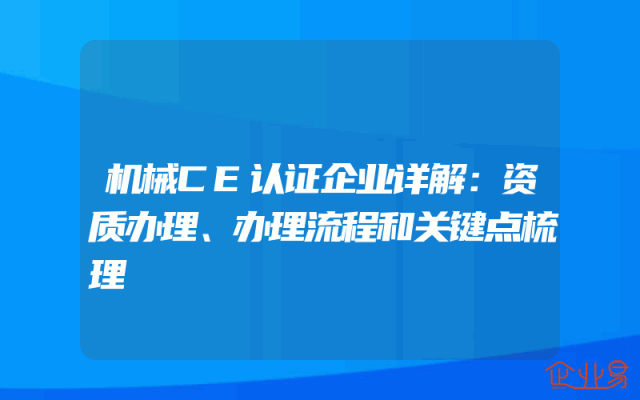 - 机械CE认证企业详解:资质办理、办理流程和关键点梳理