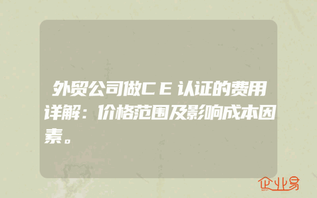 - 外贸公司做CE认证的费用详解:价格范围及影响成本因素。
