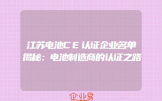 - 江苏电池CE认证企业名单揭秘:电池制造商的认证之路