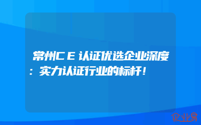 - 常州CE认证优选企业深度:实力认证行业的标杆!