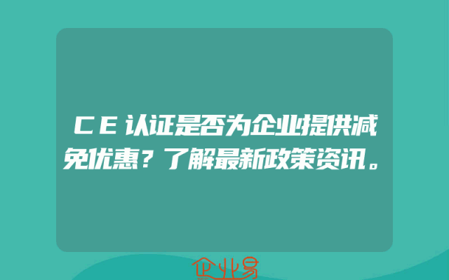 - CE认证是否为企业提供减免优惠?了解最新政策资讯。