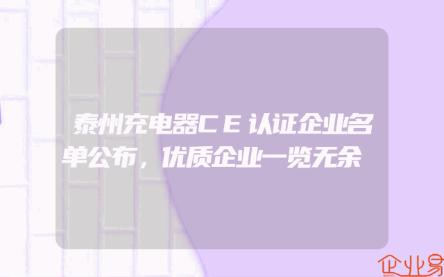 - 泰州充电器CE认证企业名单公布,优质企业一览无余