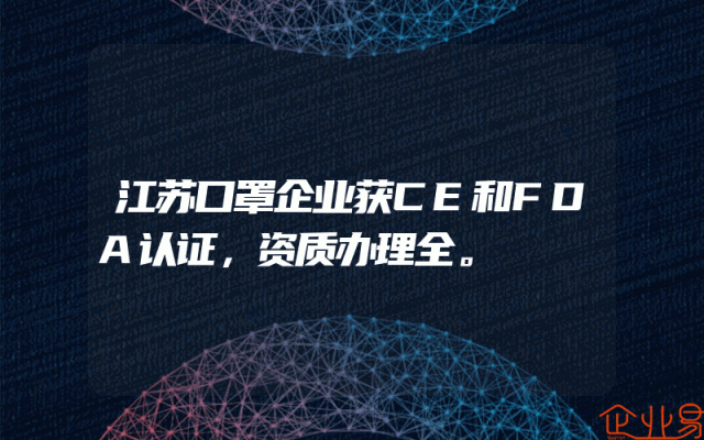 - 江苏口罩企业获CE和FDA认证,资质办理全。