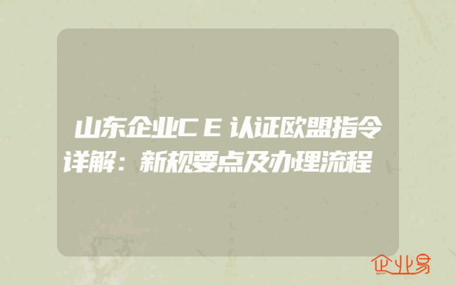 - 山东企业CE认证欧盟指令详解:新规要点及办理流程