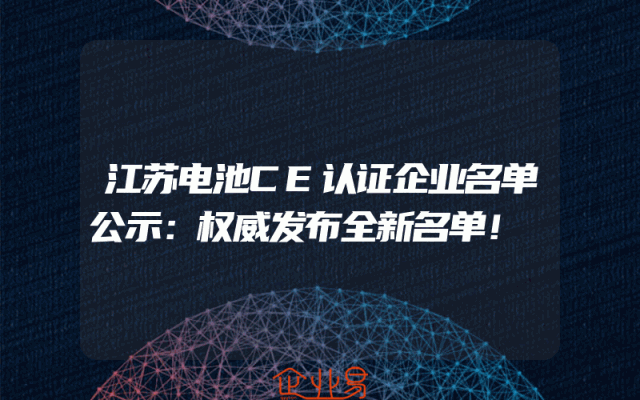 - 江苏电池CE认证企业名单公示:权威发布全新名单!