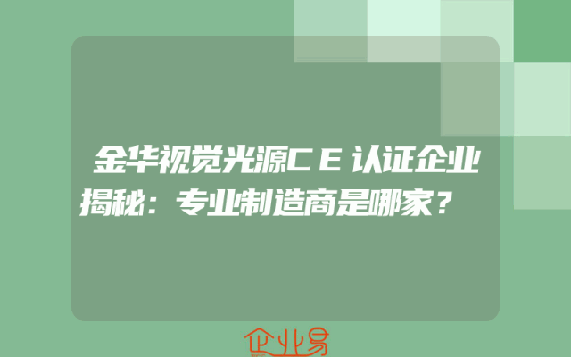 - 金华视觉光源CE认证企业揭秘:专业制造商是哪家?