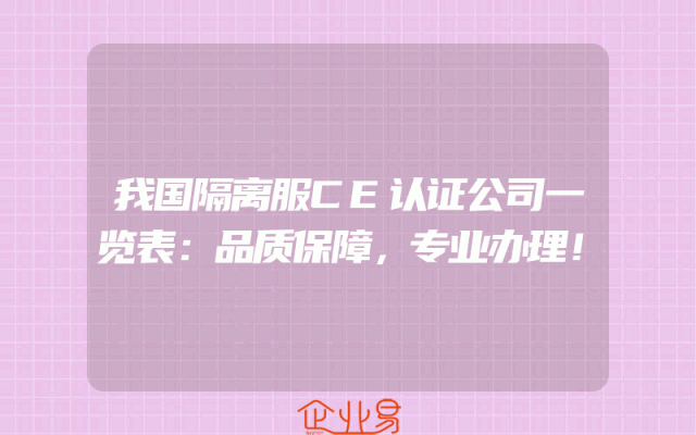 - 我国隔离服CE认证公司一览表:品质保障,专业办理!
