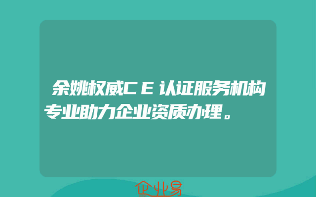 - 余姚权威CE认证服务机构专业助力企业资质办理一、引言在全球化日益盛行的今天,企业面临着越来越多的市场竞争与挑战。为了提升产品质量和企业信誉,许多企业选择引进国际认证标准,其中CE认证便是欧洲市场准入的重要门槛。位于余姚的权威CE认证服务机构
