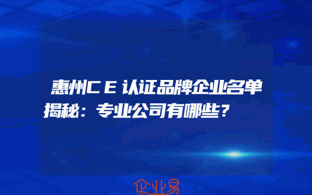 - 惠州CE认证品牌企业名单揭秘:专业公司有哪些?