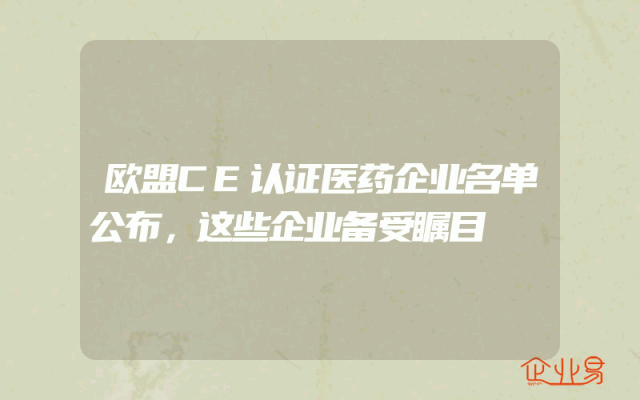 - 欧盟CE认证医药企业名单公布,这些企业备受瞩目