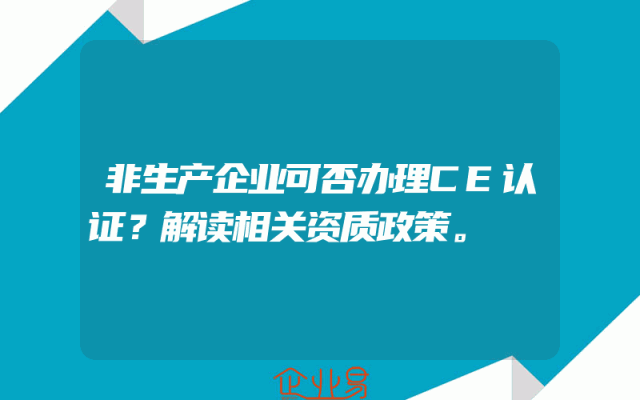 - 非生产企业可否办理CE认证?解读相关资质政策。