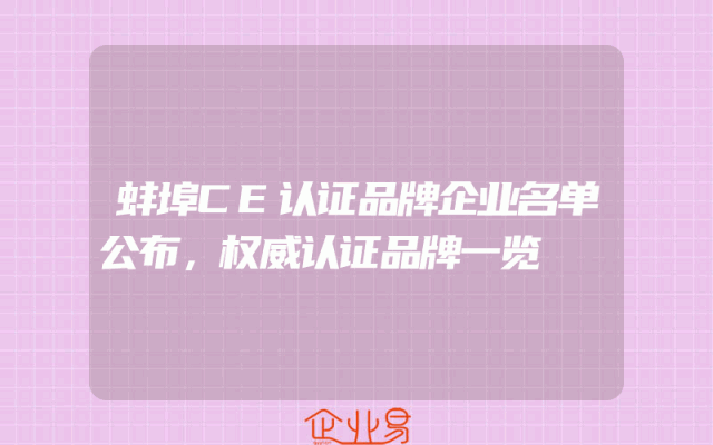 - 蚌埠CE认证品牌企业名单公布,权威认证品牌一览