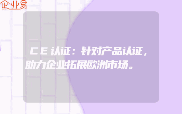 - CE认证:针对产品认证,助力企业拓展欧洲市场。