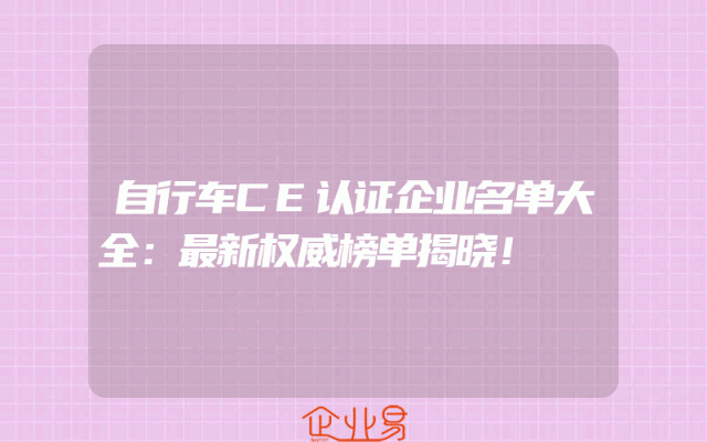 - 自行车CE认证企业名单大全:最新权威榜单揭晓!