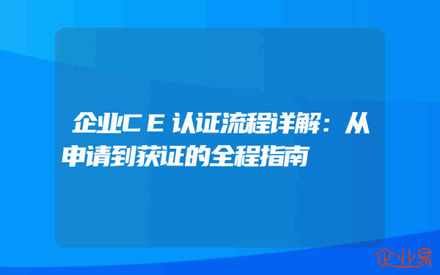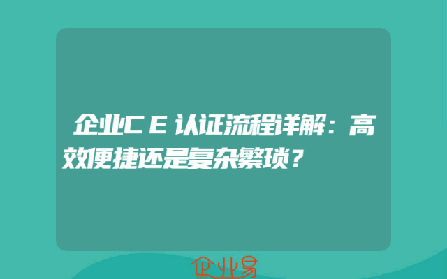 - 企业CE认证流程详解:高效便捷还是复杂繁琐?