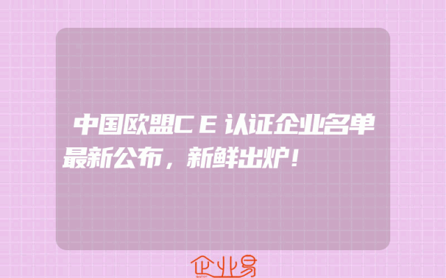 - 中国欧盟CE认证企业名单最新公布,新鲜出炉!