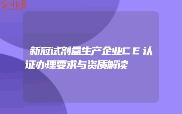 - 新冠试剂盒生产企业CE认证办理要求与资质解读