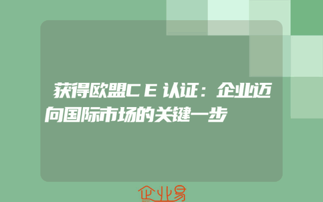 - 获得欧盟CE认证:企业迈向国际市场的关键一步