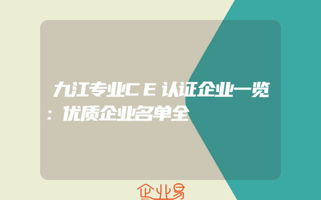 - 九江专业CE认证企业一览:优质企业名单全解析一、九江CE认证企业概述九江作为重要的工业城市,众多企业致力于产品质量和国际化进程,积极申请CE认证,以提高产品在欧洲市场的竞争力。CE认证作为欧洲市场的准入证,对提升产品质量和企业形象有着重要作