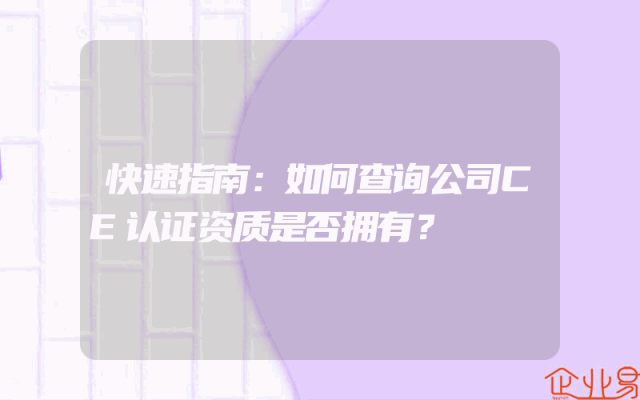- 快速指南:如何查询公司CE认证资质是否拥有?