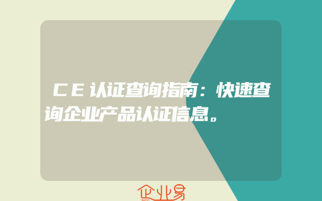 - CE认证查询指南:快速查询企业产品认证信息一、了解CE认证首先,我们需要对CE认证有一个基本的了解。CE认证是欧洲市场针对产品的安全与健康标准所实施的强制性认证,任何想要在欧洲市场销售的产品都必须通过CE认证。了解这一点对于企业和消费者都至