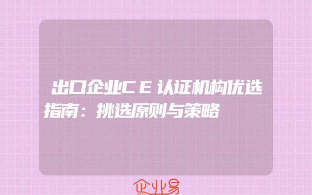 - 出口企业CE认证机构优选指南:挑选原则与策略