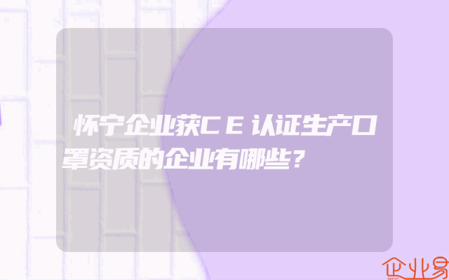 - 怀宁企业获CE认证生产口罩资质的企业有哪些?