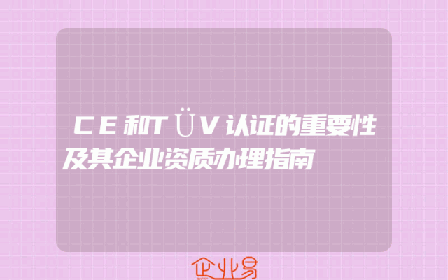 - CE和TÜV认证的重要性及其企业资质办理指南