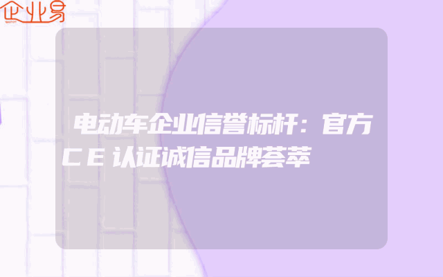 - 电动车企业信誉标杆:官方CE认证诚信品牌荟萃