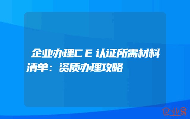 - 企业办理CE认证所需材料清单:资质办理攻略