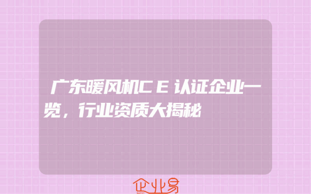 - 广东暖风机CE认证企业一览,行业资质大揭秘