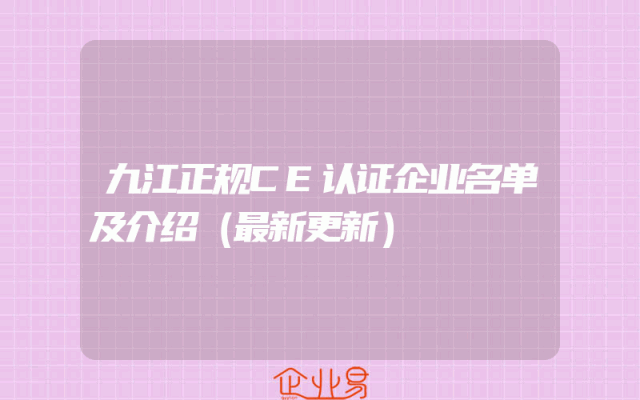 - 九江正规CE认证企业名单及介绍(最新更新)