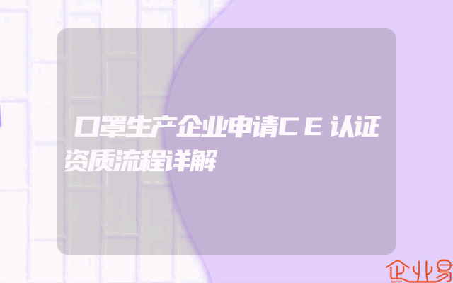 - 口罩生产企业申请CE认证资质流程详解