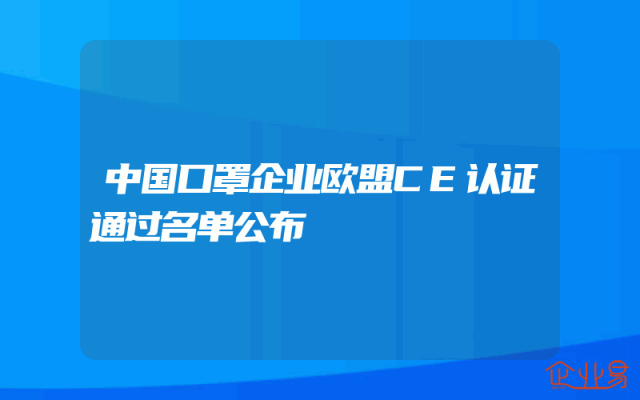 - 最新欧盟CE认证中国口罩企业名单公布