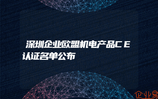 - 深圳企业欧盟机电产品CE认证名单公布