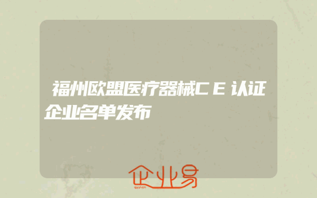 - 福州欧盟医疗器械CE认证企业名单发布
