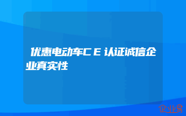 - 优惠电动车CE认证诚信企业真实性解析一、CE认证的重要性随着电动车市场的迅猛发展,产品质量与安全问题愈发受到关注。对于电动车企业而言,CE认证不仅代表了产品的品质与安全性能符合欧盟法规标准,更是企业走向国际市场的通行证。此认证不仅要求产品本