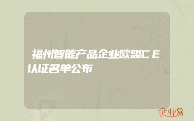 - 福州智能产品企业欧盟CE认证名单公布