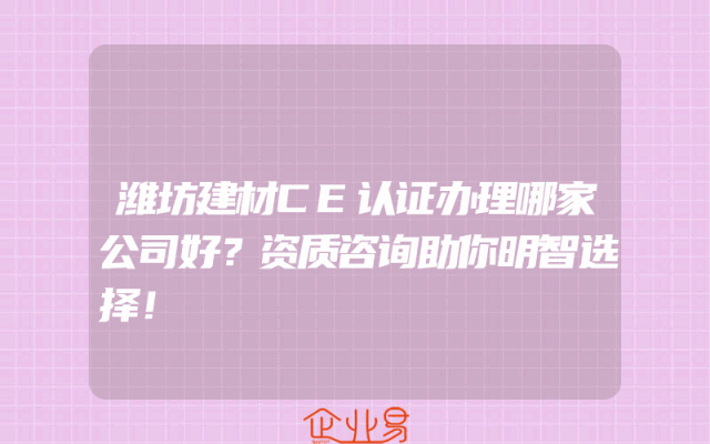 - 潍坊建材CE认证办理哪家公司好?资质咨询助你明智选择!