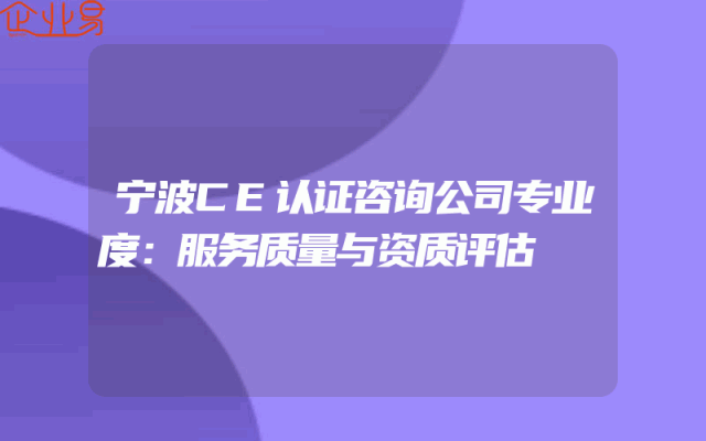 - 宁波CE认证咨询公司专业度:服务质量与资质评估