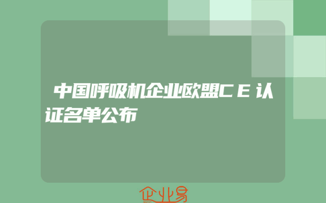 - 欧盟CE认证强制呼吸机企业名单公布