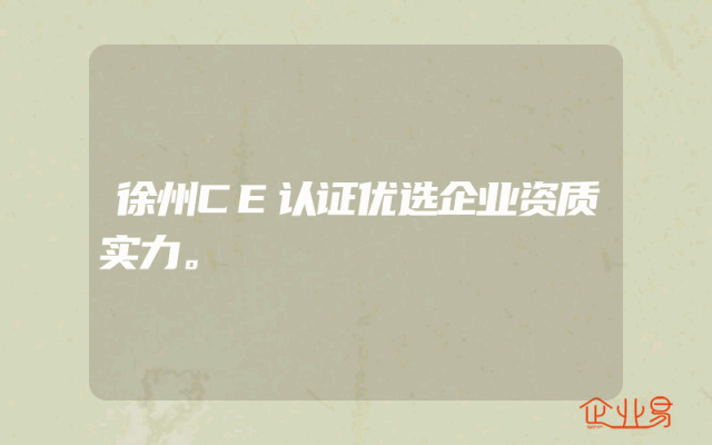 - 徐州CE认证优选企业资质实力。