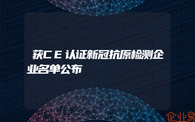- 获CE认证新冠抗原检测企业名单公布