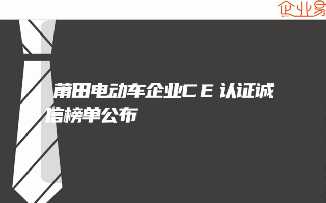- 莆田电动车企业CE认证诚信榜单公布