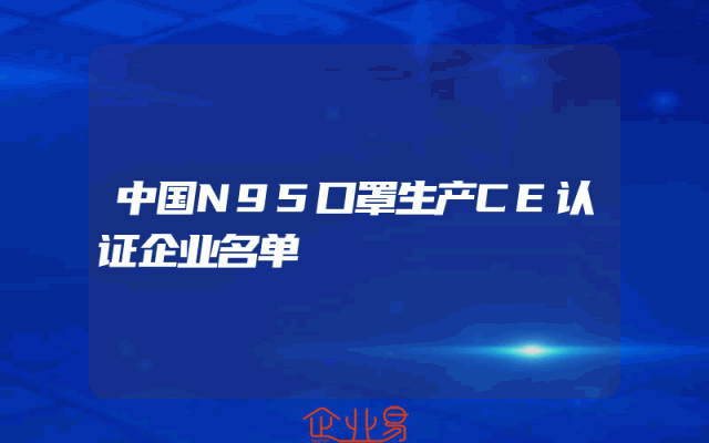- 中国N95口罩生产CE认证企业名单