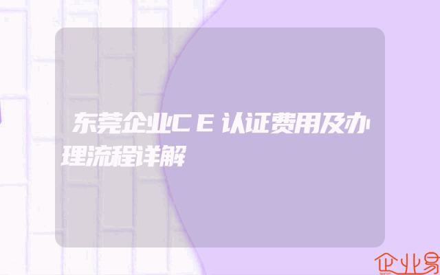 - 东莞企业CE认证费用及办理流程详解